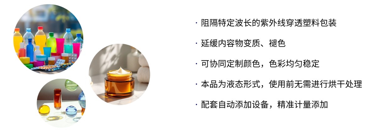 | 为光敏产品提供防护 约克抗 UV 功能型液体色母赋予塑料包装以独特的性能,主要是针对包装内容物中见光易分解的营养成分进行保护,使其 免受光的破坏,进而保护商品长期具有良好的色泽以及品质。