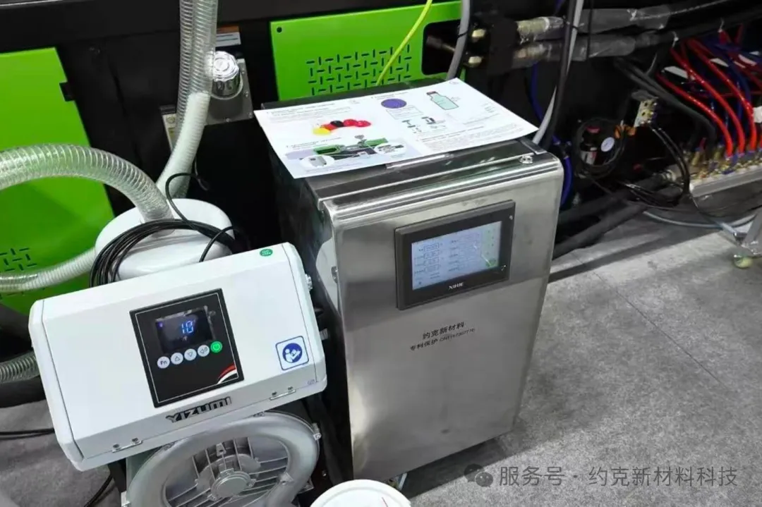 色油机——连接材料与智能制造 本次展会中,一台自动化液体色母添加设备吸引了众多客户关注。该设备能够实现高精度计量投加,稳定控制色差,减少人工干预,同时显著提升生产线自动化水平。